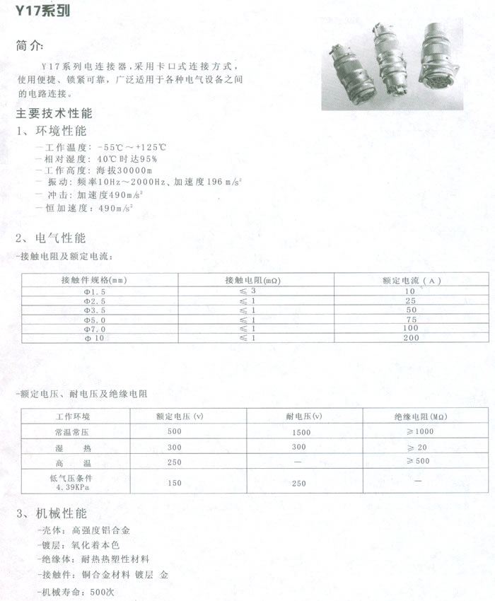 Y17系列圓形電連接器