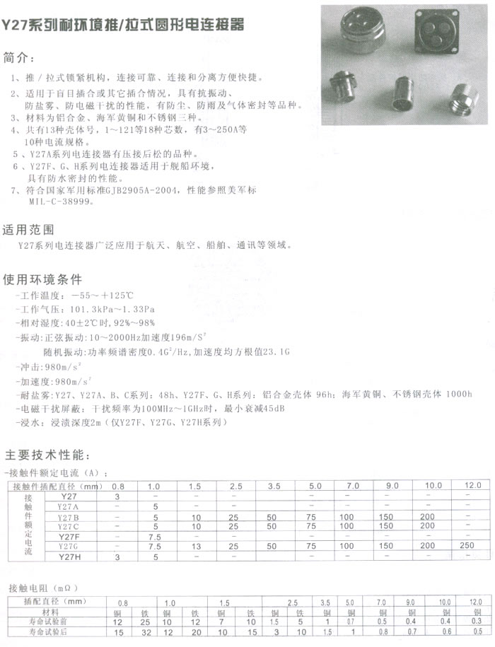 YTLB系列高密度推/拉式自鎖圓形電連接器